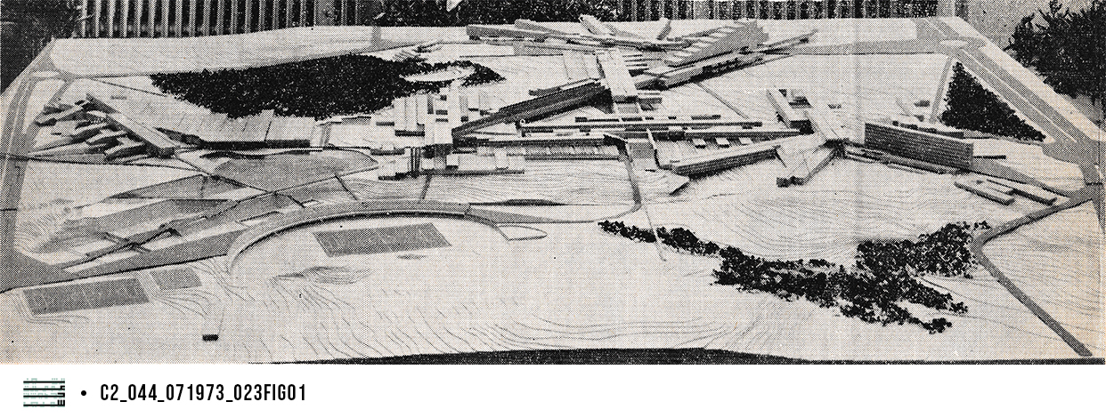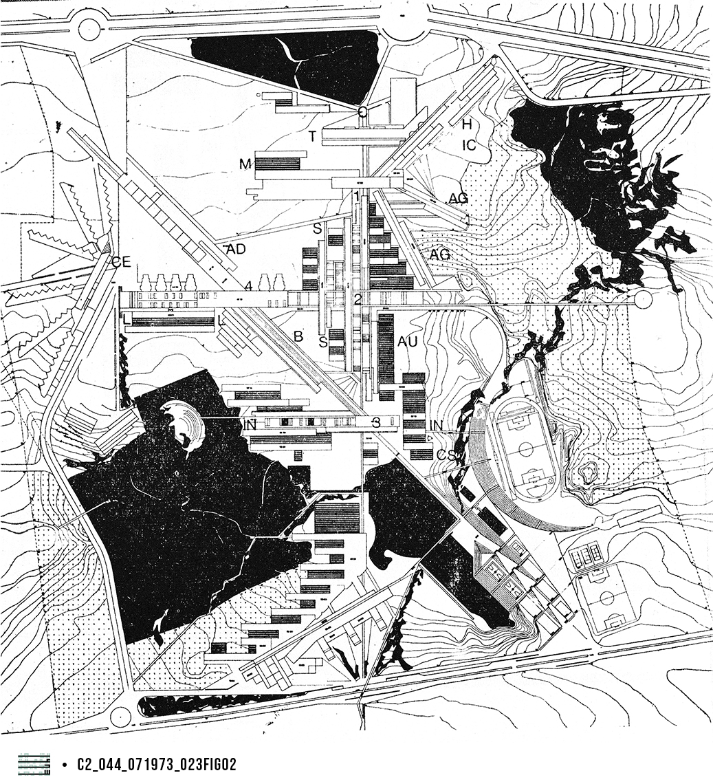 In his design, Ciamarra adopted a structural principle grounded in the functional separation of educational activities, such as faculties and research centers, from public services, as well as sports, residential, and recreational facilities, while ensuring architectural and spatial interconnections that facilitated communication among the various components through a network of organized spaces.06