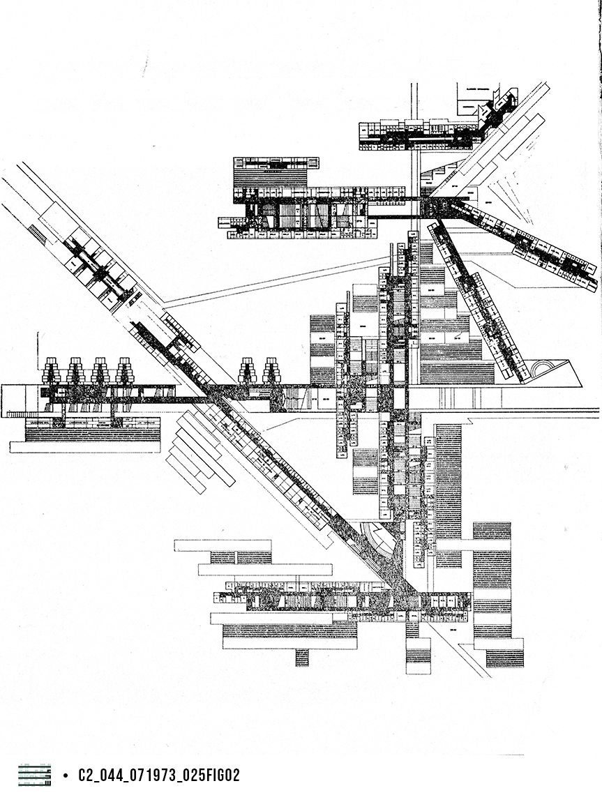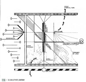 The second objective was flexibility and growth, as he explained that university spaces begin independent of each other, and seek to interact and “coincide” with each other over time, with intermediate stages that allow interaction at different levels. For Ciamarra, adaptation was defined as an organization based on sequence of spaces, services, etc., rather than the arrangement of functions. For Ciamarra, flexibility is achieved when designing spaces through a multi-level system, where each level has a specific function, and the character of the design comes from the configuration of buildings and the spaces between them rather than generic networks of connection and movement. Ciamarra acknowledges that the growth of a university may not be achieved with the same architectural system and so he sought to plan for the future through growth systems that respond to changes in research and laboratory requirements, not to changes in student numbers.