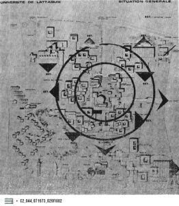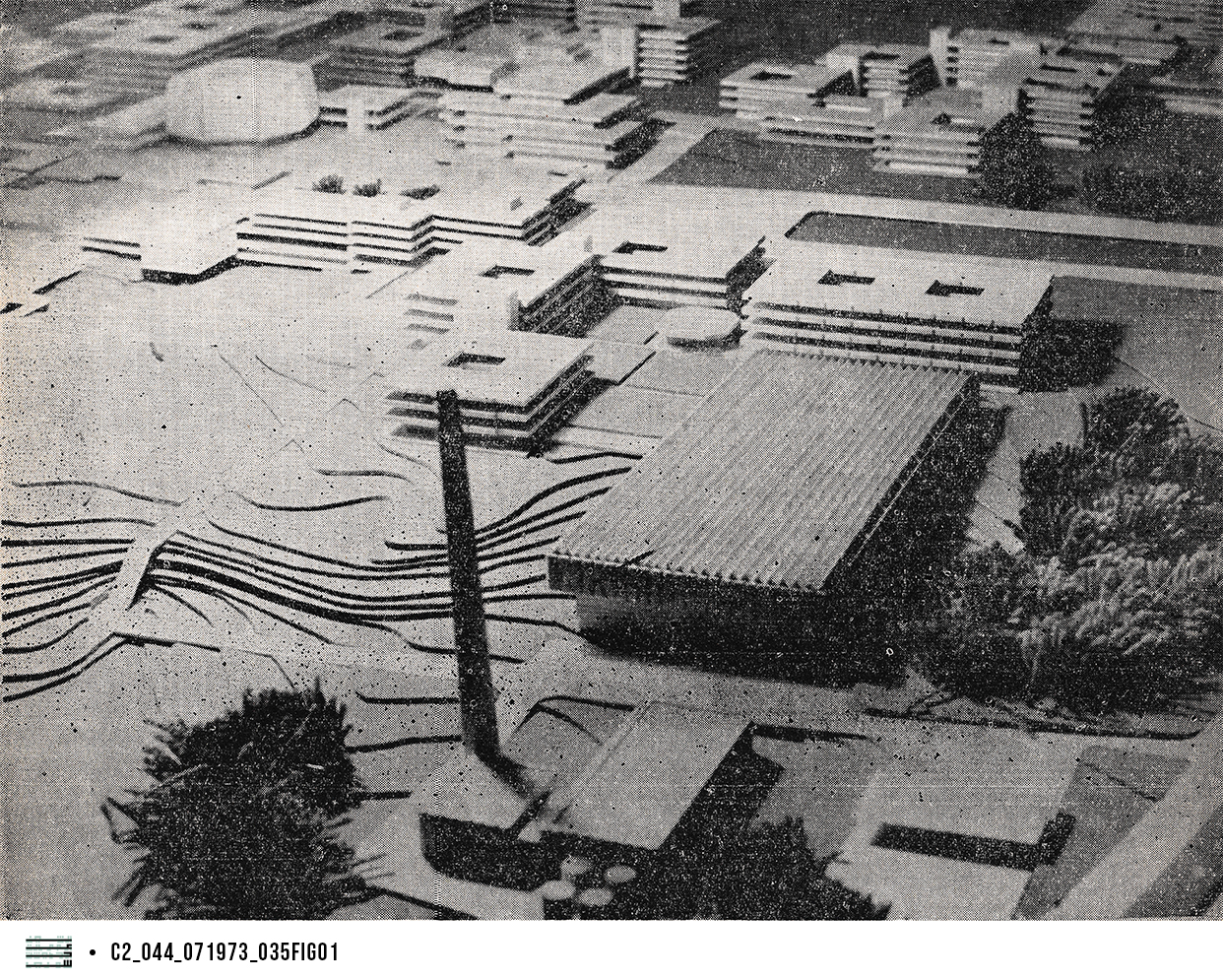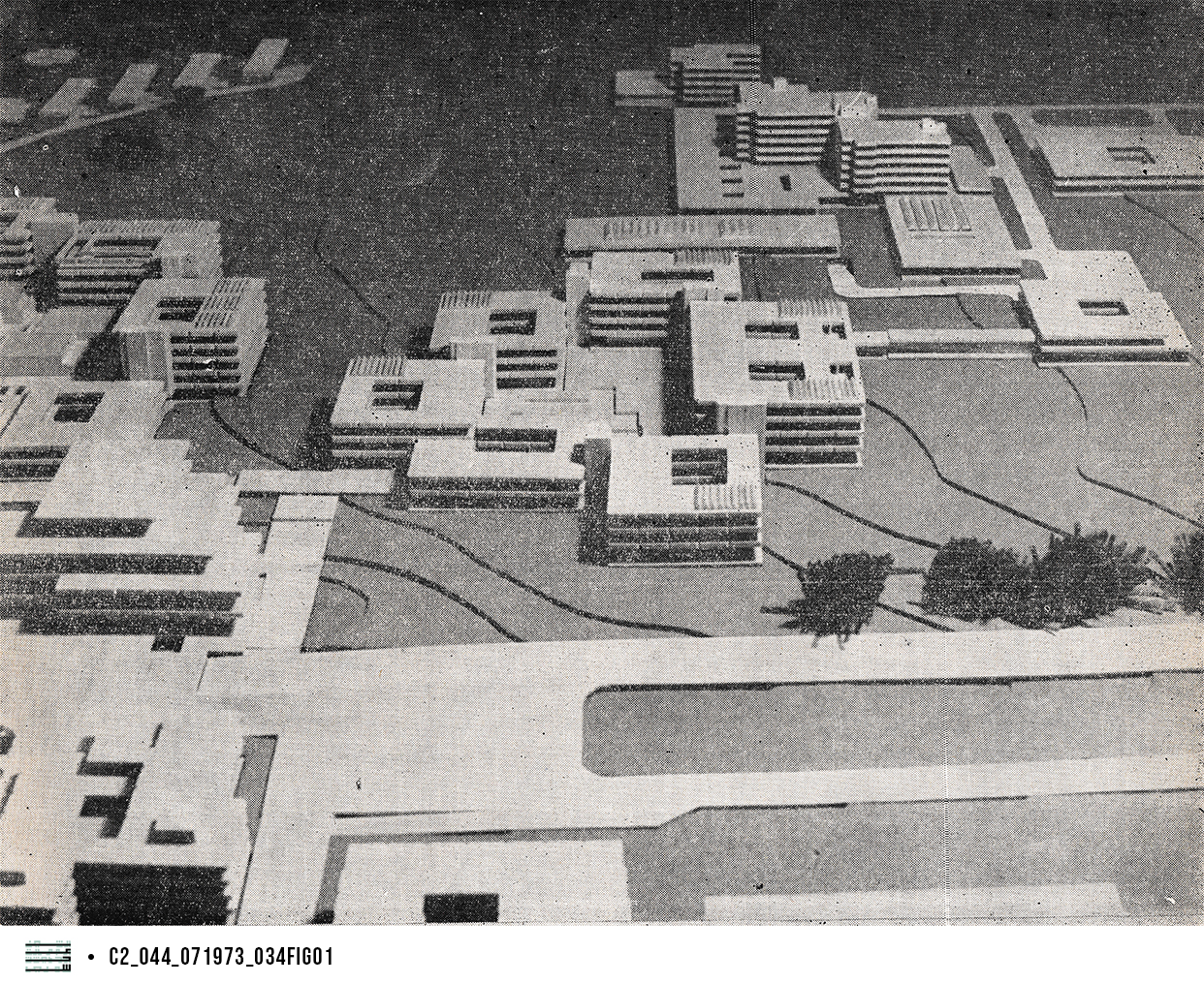 The final jury report confirmed the clarity of the overall scheme in Buchel’s project and its capacity to establish smooth relationships between the different functions of the university complex. The committee praised the organization of the buildings around the main plaza, which endowed the project with a distinctive architectural and spatial unity, as well as its response to the site’s topography through the strategic use of elevated terrain for construction. However, the jury also noted several shortcomings, including the overlap between pedestrian and vehicular access at the main entrance, inadequate connectivity serving the Faculty of Arts, and the routing of a service road for the Faculties of Agriculture and Science through the residential zone. In addition, the location of the accommodation area resulted in the loss of olive groves. The committee further observed that the proposed internal expansion required design modifications to ensure proper connectivity.05
