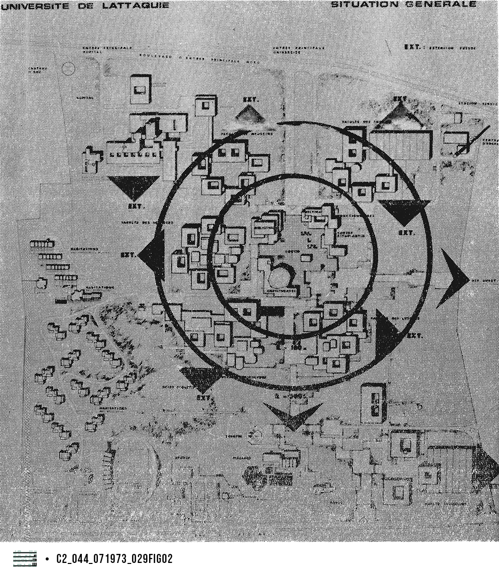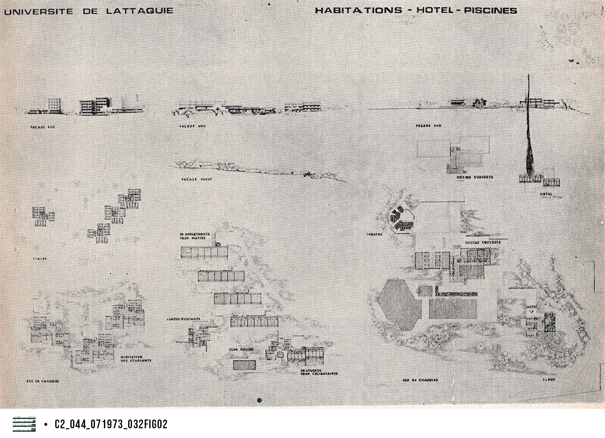 01 Alaa al-Din Lawlah, “Musābaqat Mashrūʿ Jāmiʿat al-Lādhiqiyya: Dirāsa wa-Taḥlīl [The Latakia University Project Competition: Study and Analysis],” The Arab Engineer, July 1973, 13-43. The Arab Engineer magazine collection, Archive of Modern Architecture in Syria (AMASyria).