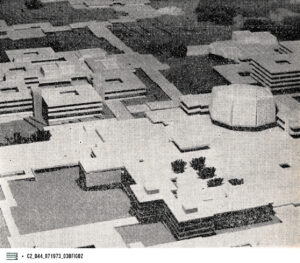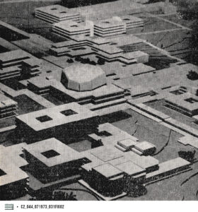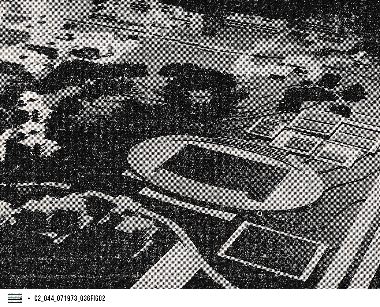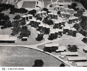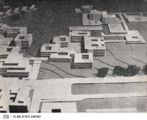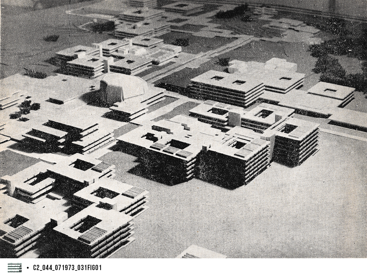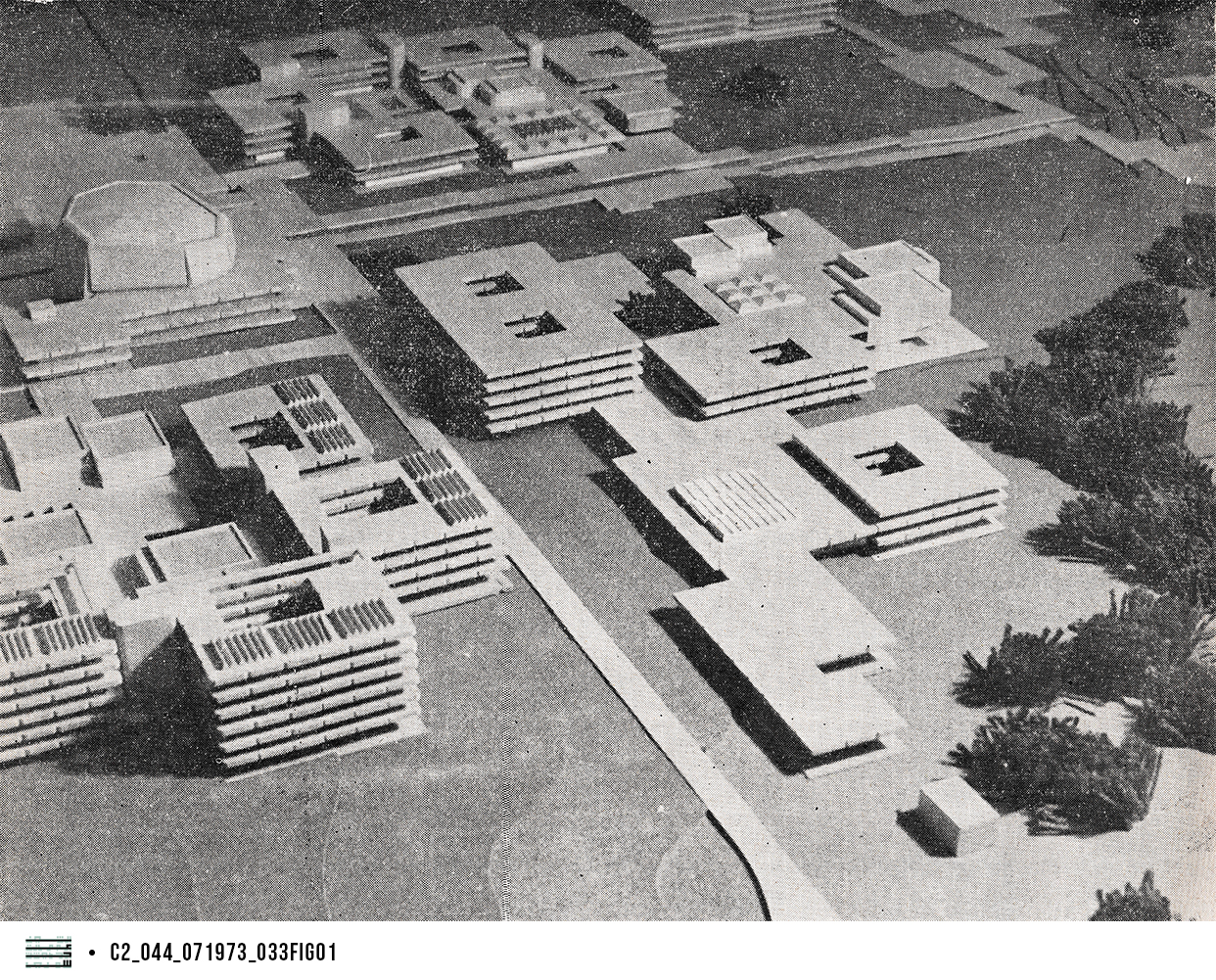 Each faculty is composed of interconnected buildings linked by vertical circulation elements and organized around a green internal courtyard, allowing for phased construction according to need. Buchel’s proposal is further characterized by a carefully considered distribution of functions, which accounted for the reciprocal relationship between the university and the city, as well as external movement patterns, while providing opportunities for future expansion structured around the central plaza.02